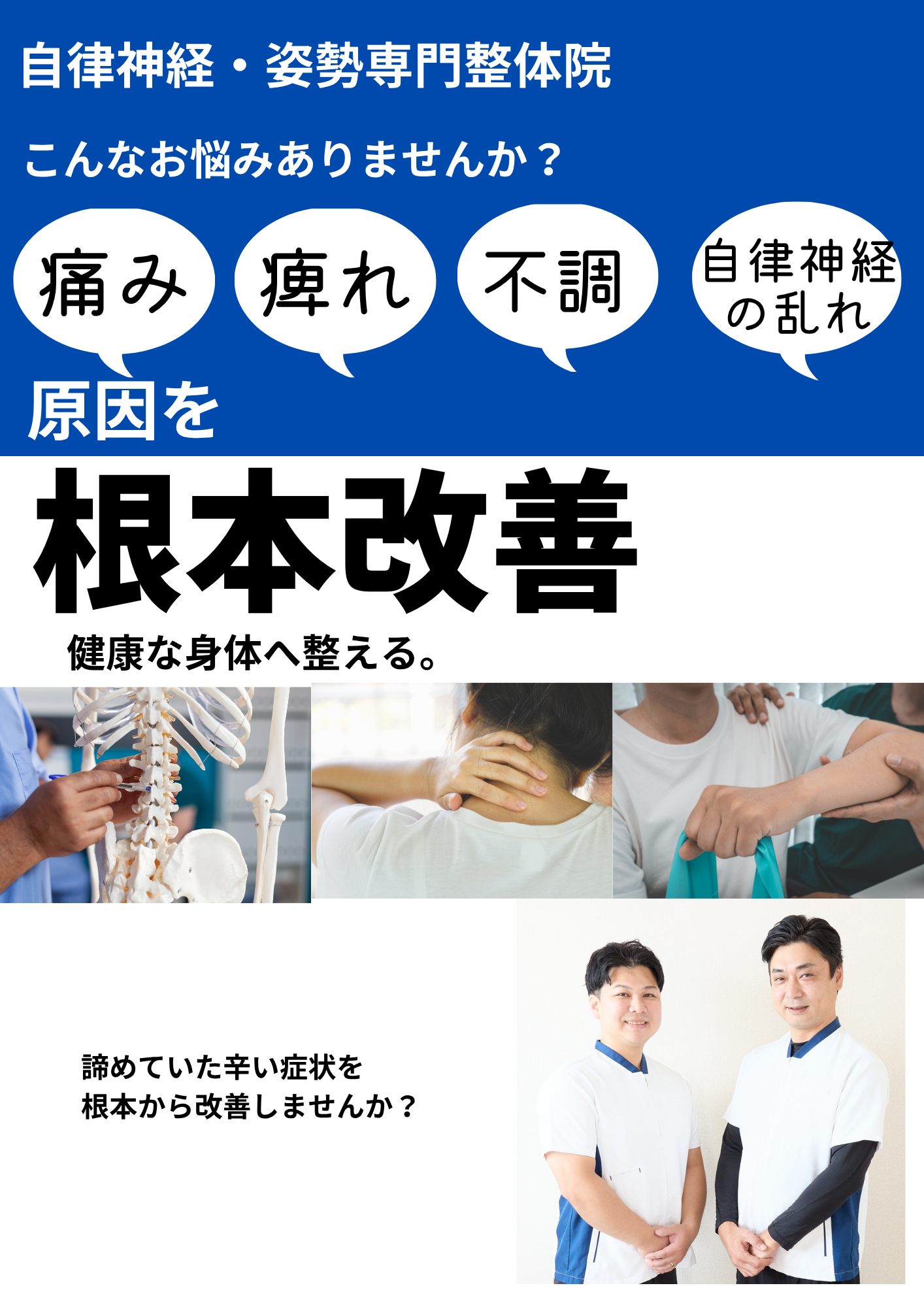 当院では、自律神経のバランスを整え、根本から改善を目指す施術を行っています。